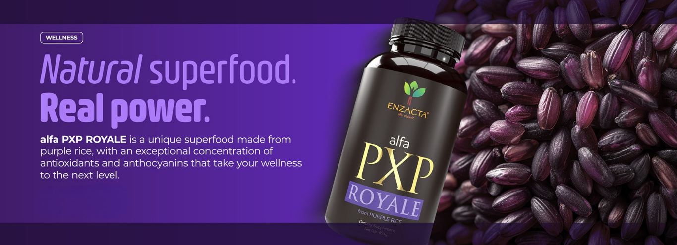 ✔ alfa PXP FORTE – ENZACTA’s specialty cellular nutrition blend rich in polysaccharides peptides, essential amino acids, antioxidants, and enriched with spirulina.